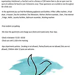 Apartmán nabízí TV s plochou obrazovkou se satelitními kanály, přístroj na přípravu kávy a čaje, zvukotěsná okna v pokojích, i vnitřní dvorek. V pokojích jsou zahrnuty hypoalergenní polštáře a povlečení, a také fén, osušky a ručníky. Apartmán má 1 koupelen.